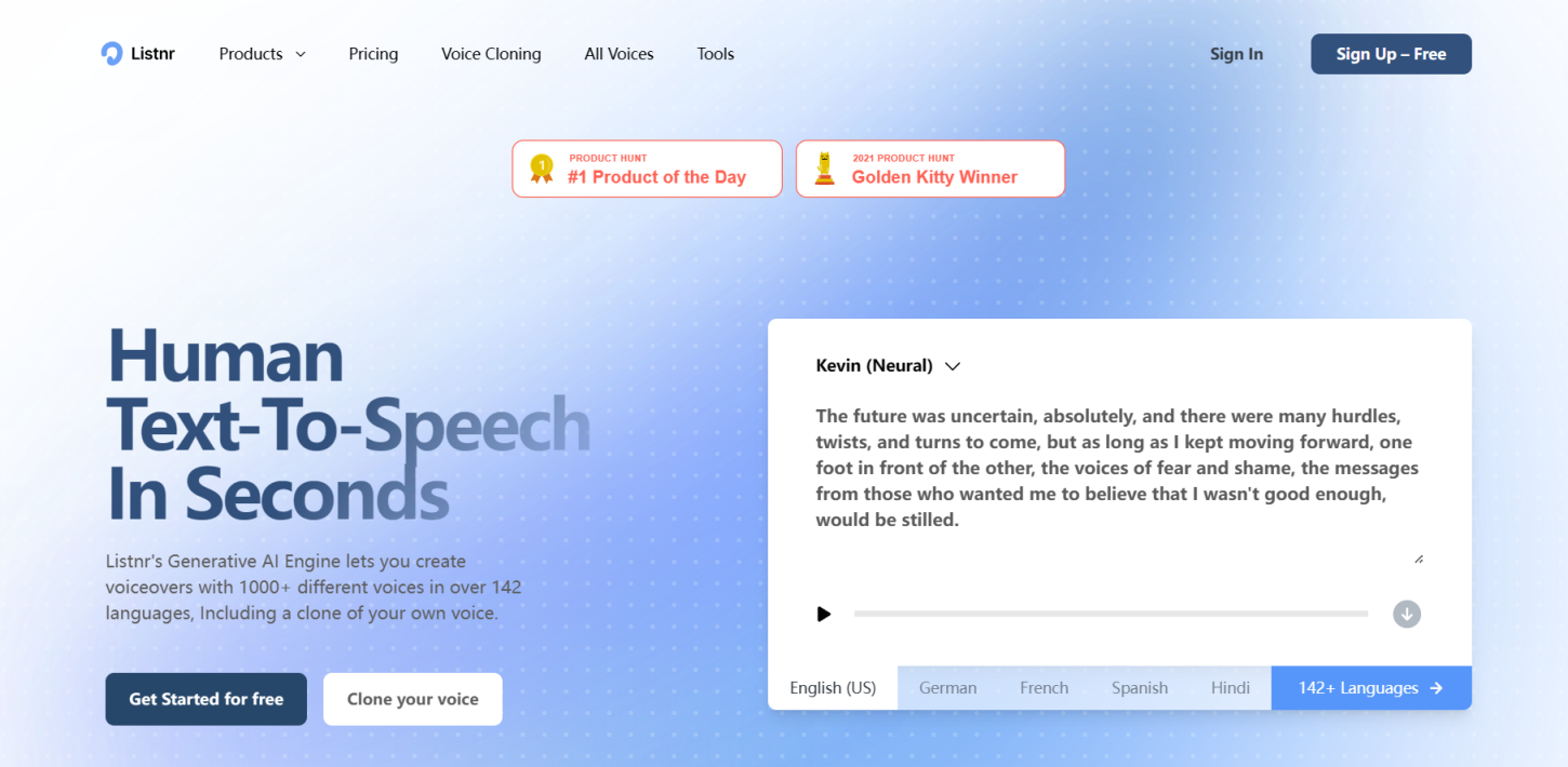 Listnr允许用户通过其文本转语音编辑器将文本内容转换为逼真的AI语音。同时,Listnr提供了一个包含1000多种声音的库,覆盖了142种不同的语音和方言,为用户提供了丰富的选择,以满足不用场景和需求的语音输出。