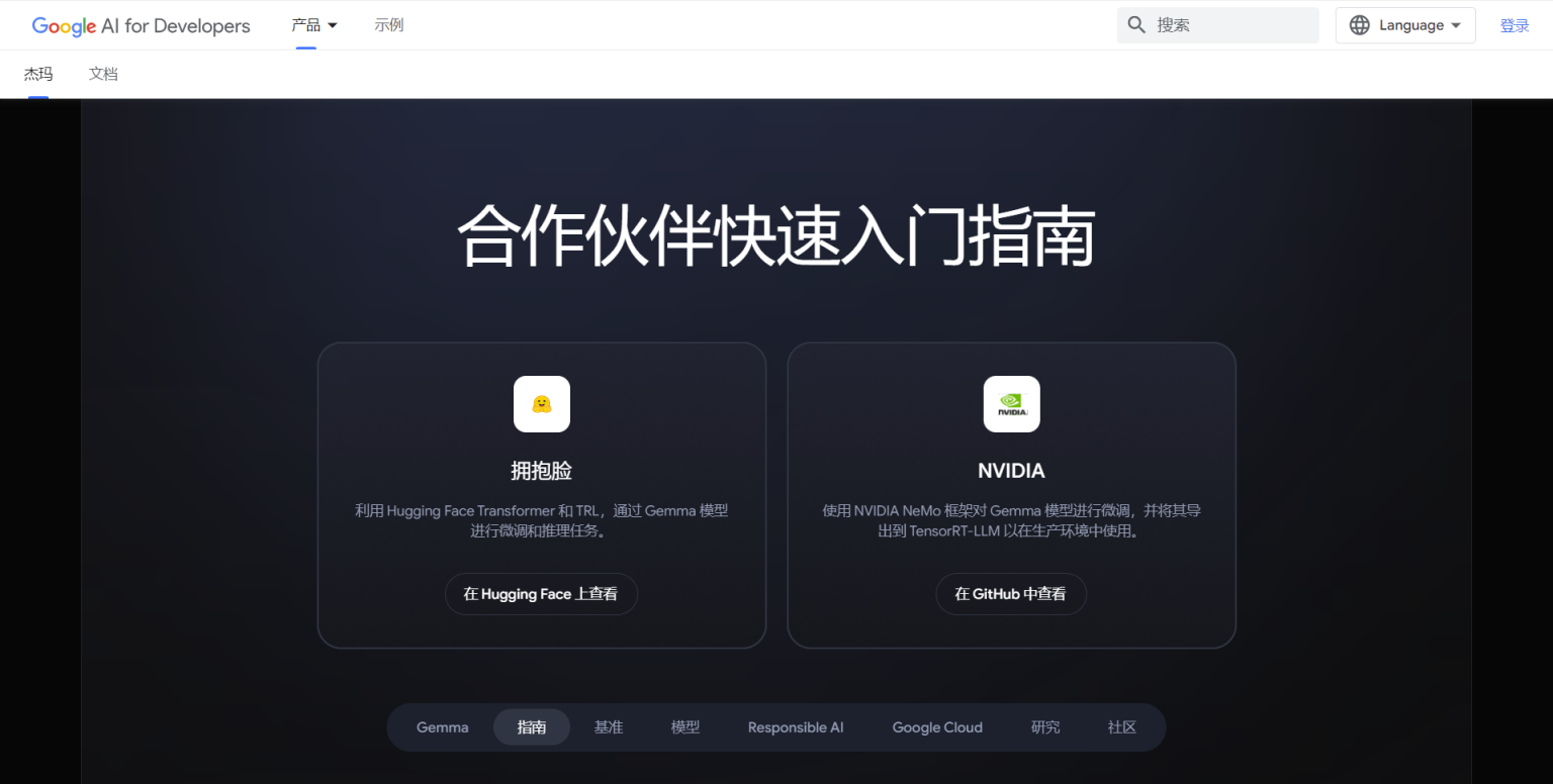 开发者可以利用Gemma模型提供的Colab和Kaggle快速启动和运行项目。此外Gemma模型与Hugging Face、MaxText、NVIDIA NeMo和TensorRT-LLM等行业内的流行工具集成无缝,使得开发者无需在集成工具上花费大量时间,即可专注于模型的高效应用。