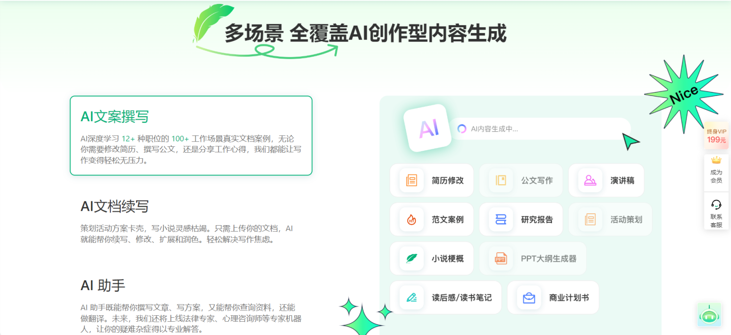 AI文档续写:笔灵AI可以根据现有的文字内容,将其改写、续写、扩写、简写为新的高质量的内容。