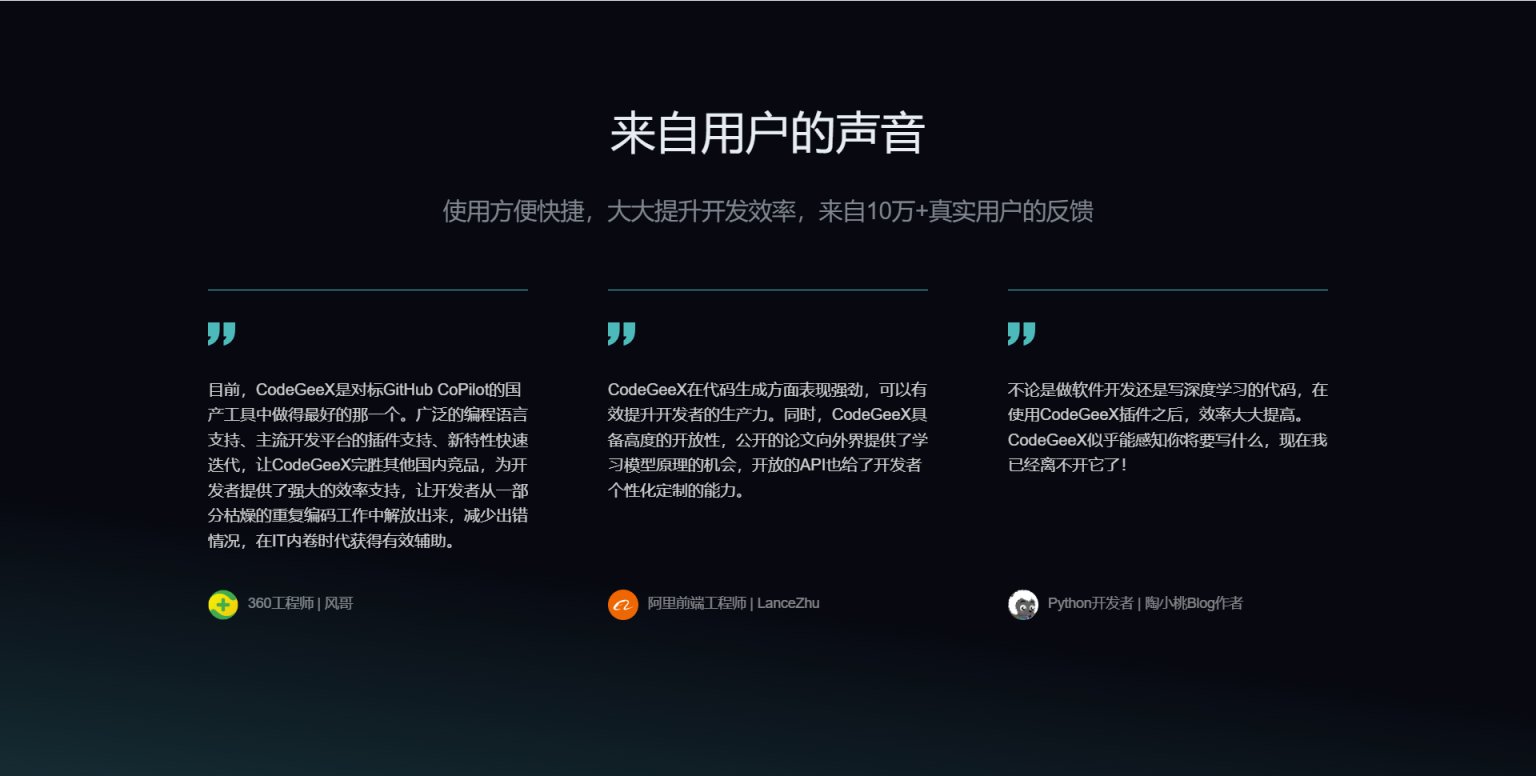 CodeGeeX 网站截图