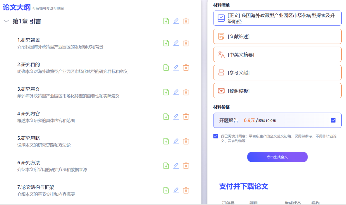 第三步:生成全文及开题报告等