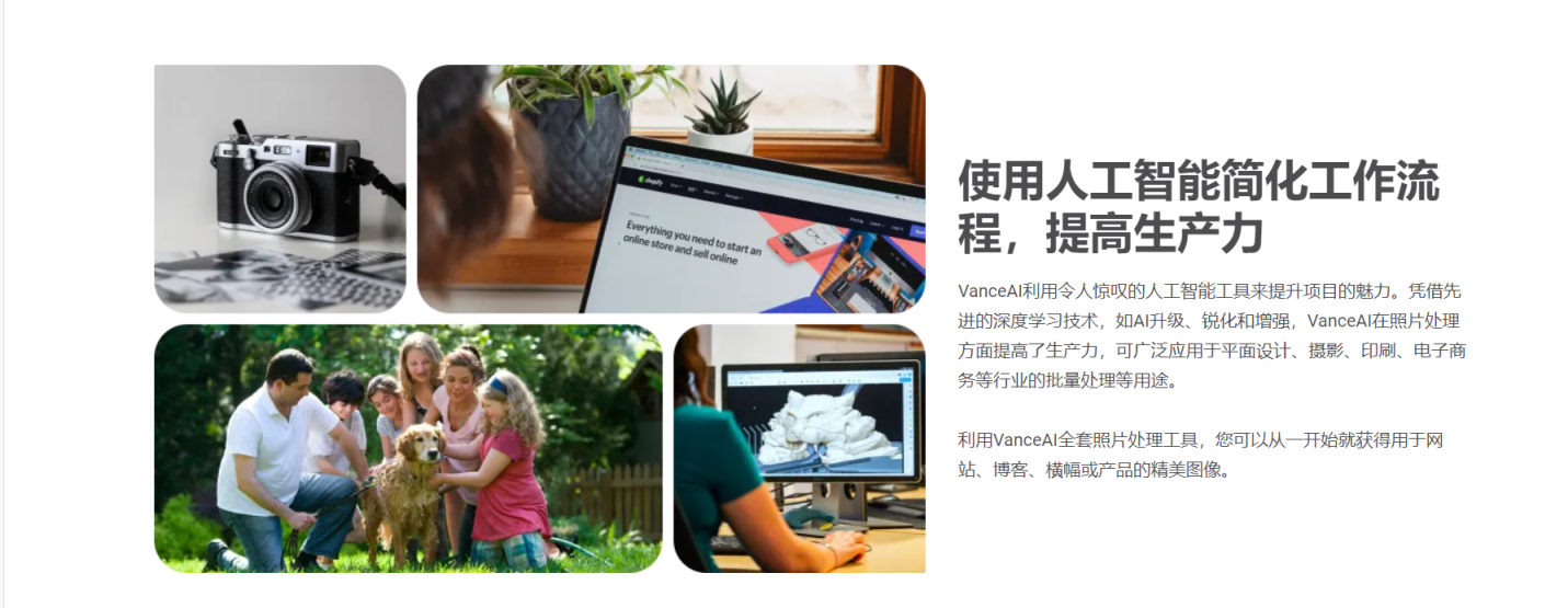 VanceAI利用令人惊叹的人工智能工具来提升项目的魅力。凭借先进的深度学习技术,如AI升级、锐化和增强,VanceAI在照片处理方面提高了生产力,可广泛应用于平面设计、摄影、印刷、电子商务等行业的批量处理等用途。