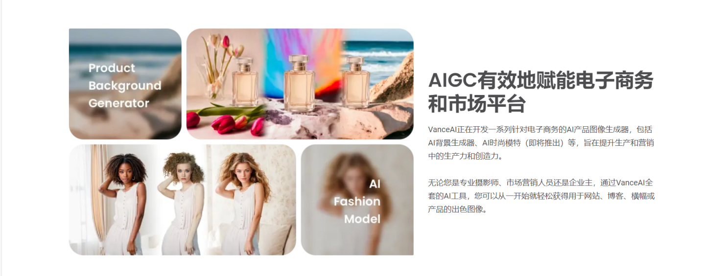 VanceAI正在开发一系列针对电子商务的AI产品图像生成器,包括AI背景生成器、AI时尚模特(即将推出)等,旨在提升生产和营销中的生产力和创造力。