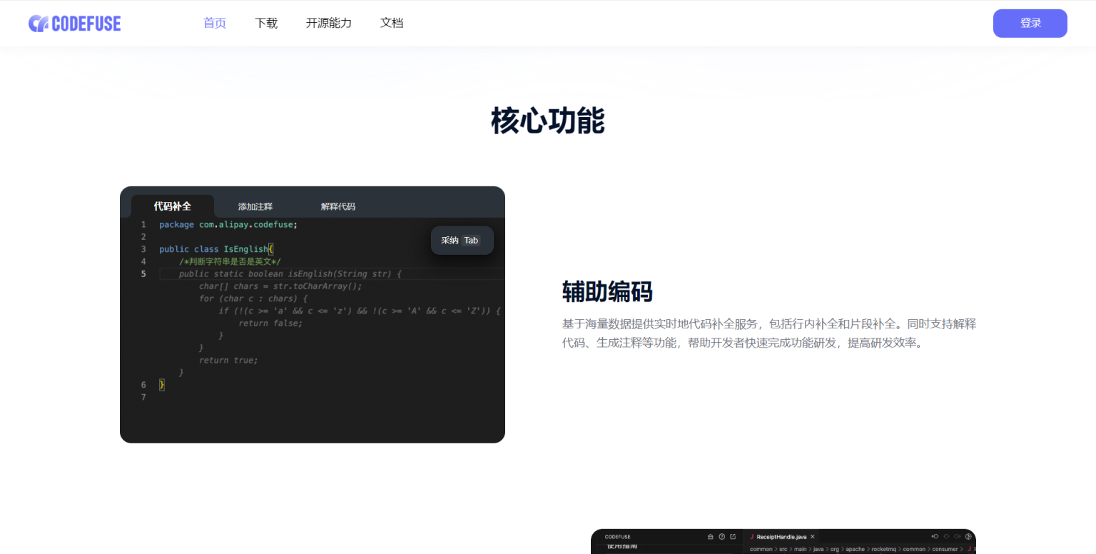 CodeFuse 是一个开源的代码编辑器,它支持多种编程语言,包括 Java、C++、Python、PHP 等。CodeFuse 提供了丰富的功能,例如语法高亮、代码折叠、代码格式化、代码检查、代码导航等。