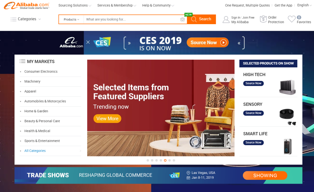 Alibaba是全球性的采购批发平台;阿里巴巴网络技术有限公司(简称:阿里巴巴集团)是以马云为首的18人于1999年在浙江杭州创立的公司。阿里巴巴集团经营多项业务,另外也从关联公司的业务和服务中取得经营商业生态系统上的支援。业务和关联公司的业务包括:淘宝网、天猫、聚划算、全球速卖通、阿里巴巴国际交易市场、1688、阿里妈妈、阿里云、蚂蚁金服、菜鸟网络等。