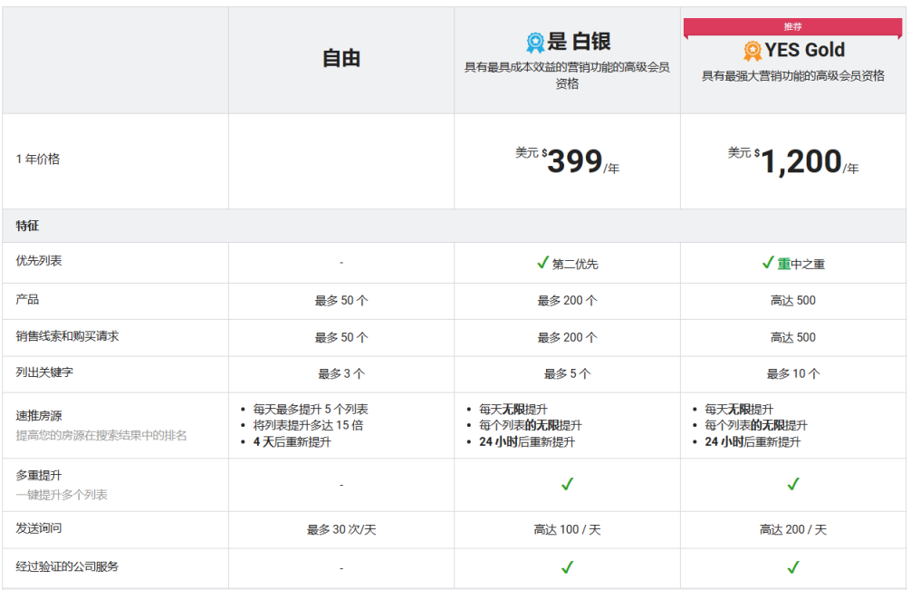 ECPlaza提供了会员服务,分为免费版、YES Silver和YES Gold。