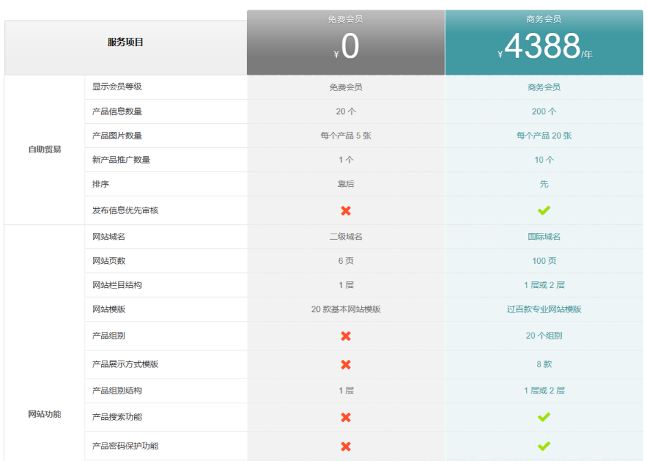 会员除了可拥有功能强大的商务网站外,更可以发布更多信息,并在同类公司中享受先排序特权,优先获得买家关注。