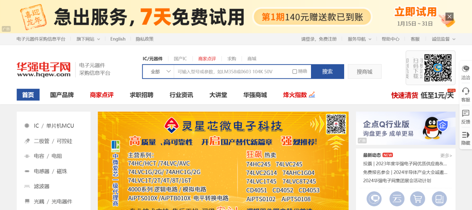 作为电子元器件原材料采购垂直 B2 B 网站,华强电子网为全球的 ic 芯片、电子元件、配件采购商、供应商、贸易商和制造商提供专业而可靠的服务。通过整合线上和线下的 ic 芯片和电子元器件资源,并借助互联网技术提供产品服务,该平台为电子元器件的采购交易提供了便捷而可信赖的平台。