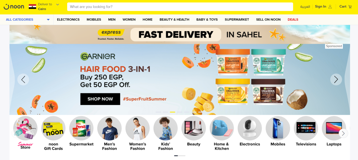 Noon定位于提供中东地区消费者最全面、最优质的商品和服务,为中东地区的消费市场提供方便、安全的购物体验。