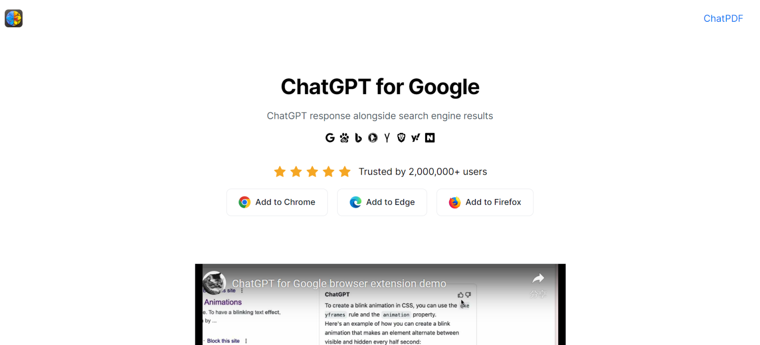 立即将ChatGPT for Google 添加到您的搜索引擎