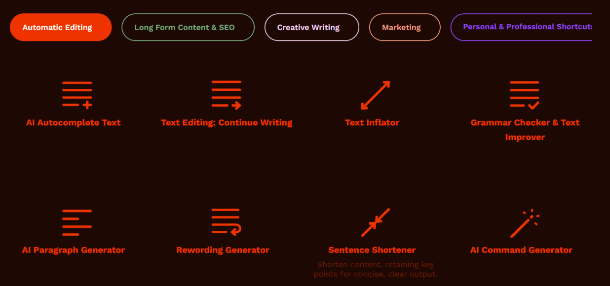 Copy(生成文字):用户可以输入关键词或短语,Rytr能在几秒钟内生成大量文本内容。它支持多种语言,包括英语、中文、西班牙语、法语等,并提供高级编辑功能,如自动纠正语法错误、提供词汇建议等。