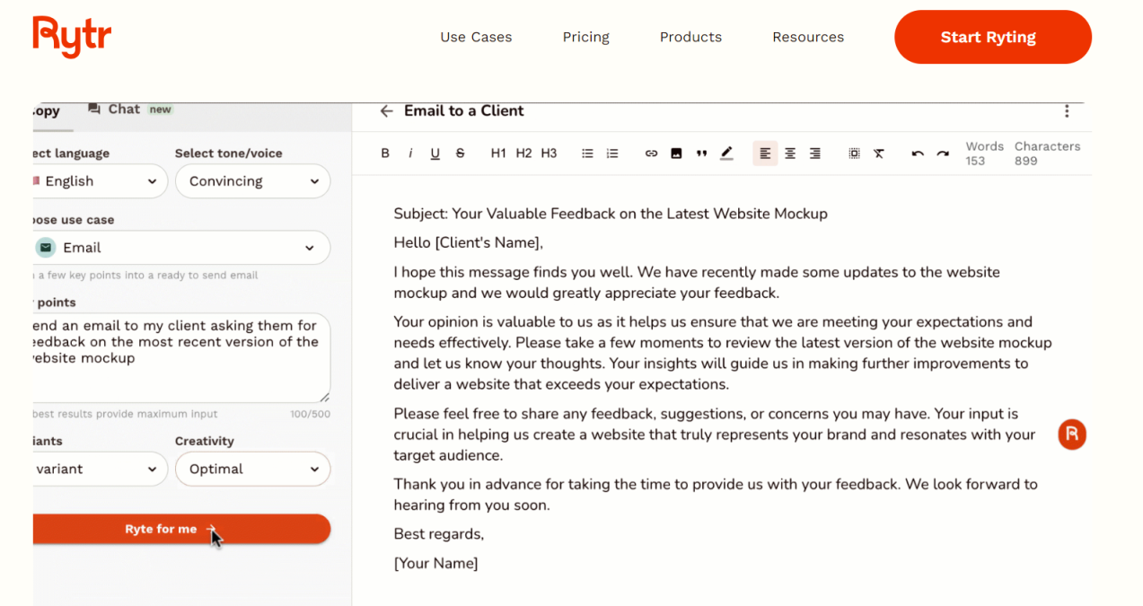 Chat(聊天):Rytr提供了聊天功能,可能允许用户与AI进行互动,获取写作灵感或进行内容讨论。