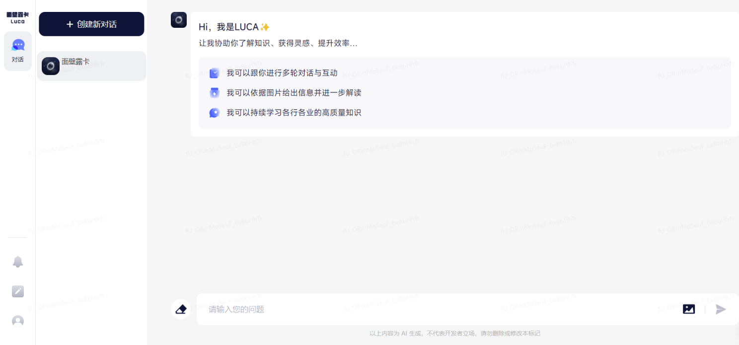 4.在底部输入框中输入你的问题,点击发送按钮即可与Luca进行互动