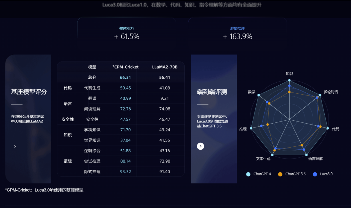 面壁露卡(Luca)是面壁智能研发的一款对话类模型产品,它基于面壁智能自研的千亿参数基座模型CPM打造。CPM系列是面壁智能自主研发的预训练大语言模型,包括国内首个中文大模型CPM-1,及国内首个开源免费商用基座模型CPM-Bee。