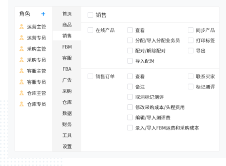 精细化权限管理: 提供多角度多场景的权限管理,保障信息安全,区分账号、店铺、模块、功能、数据的权限控制,实现不同人员的灵活设置。