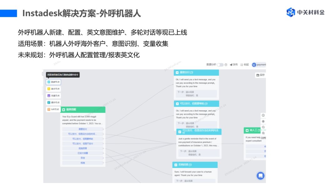 作为领先的对话式AI技术解决方案提供商,中关村科金致力于通过对话式AI技术构建人机协同的新型生产关系,帮助企业打造“超级员工”,实现具有分析决策能力的强人工智能应用。