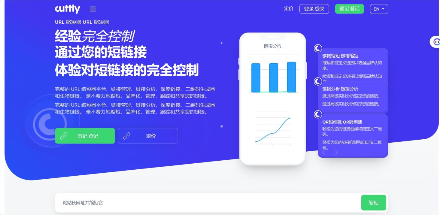 Cuttly短链的主要功能是提供短链接服务,帮助用户将较长的URL地址缩短成简短的链接,方便用户在社交媒体、电子邮件等场景下分享和传播。Cuttly短链还提供了数据分析功能,让用户了解短链接的点击情况,包括点击次数、点击来源、用户设备等信息。此外,Cuttly短链还支持自定义短链接的域名和参数,让用户可以更加灵活地使用短链接服务。