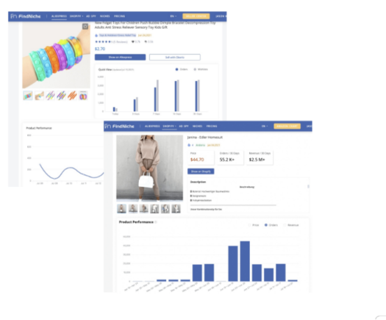 FindNiche通过高级算法抓取速卖通的Shopify的电子商品店铺,为您提供各热门细分市场中超过3000万的商品详细信息。