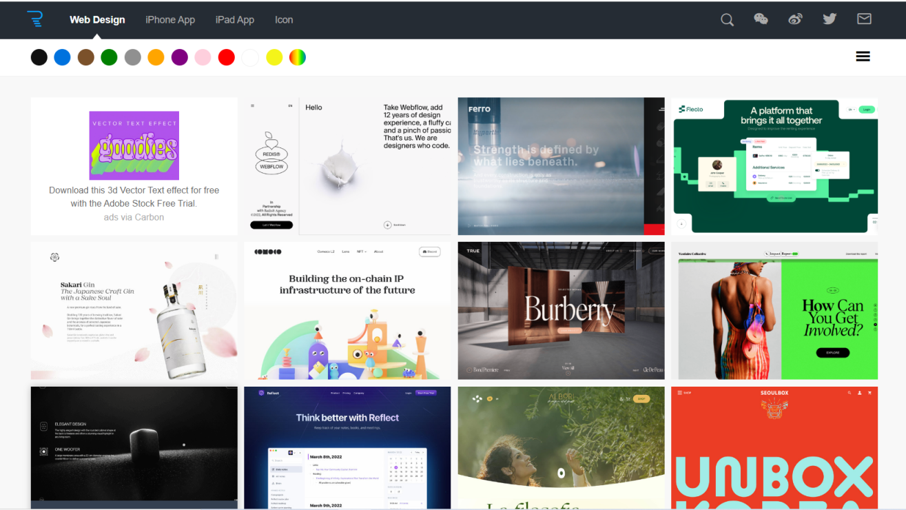 灵感来源:Reeoo为设计师提供了一个丰富的灵感库,展示全球精选的网页设计作品。