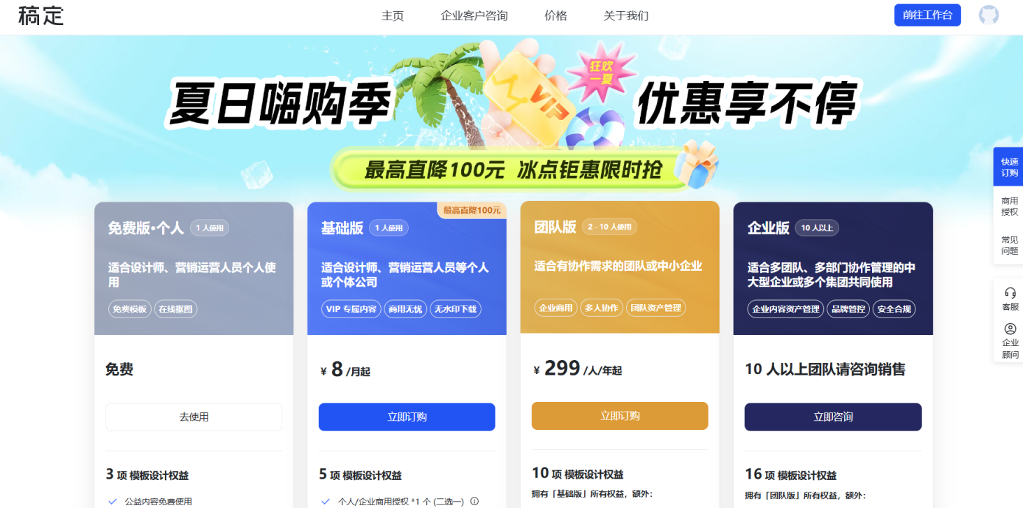 稿定设计作为一个在线设计工具,为用户提供了一个简单、快捷且成本效益高的设计解决方案。其丰富的模板库、易用性、协作功能和定期更新的内容使其成为了广泛用户群体的优选工具,尤其适合那些需要快速完成设计任务但又缺乏专业设计技能的个人和企业。