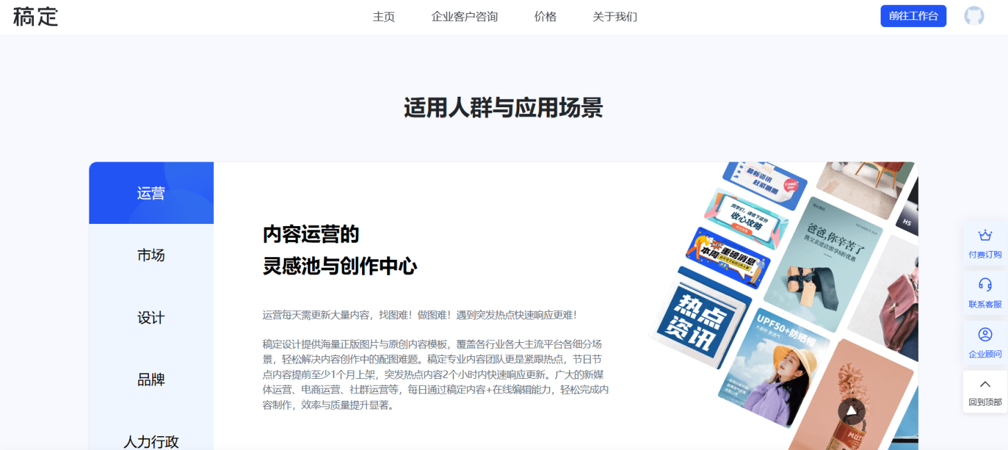 非专业设计人员:对于没有专业设计背景的个人或员工,例如营销人员、小企业主和教育工作者,稿定设计提供了一个易于上手的设计平台。
