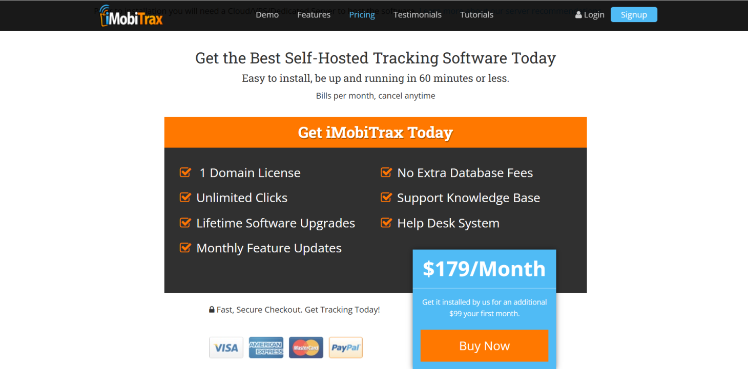 imobitrax官网给出的订购方案只有每月订购一种,可获得1 个域许可证、无限点击、终身软件升级、每月功能更新、没有额外的数据库费用、支持知识库、服务台系统;值得注意的是在安装之前,需要一个云/VPS/专用服务器来托管软件。