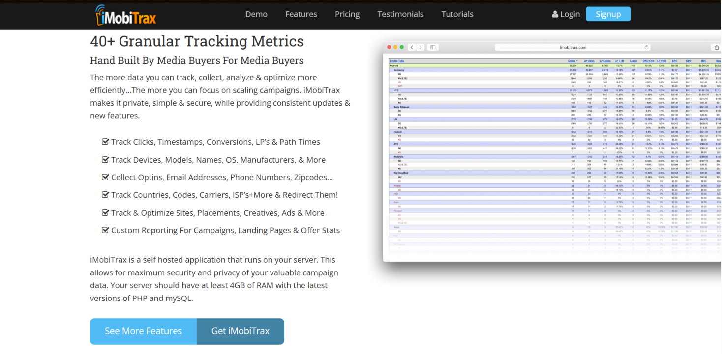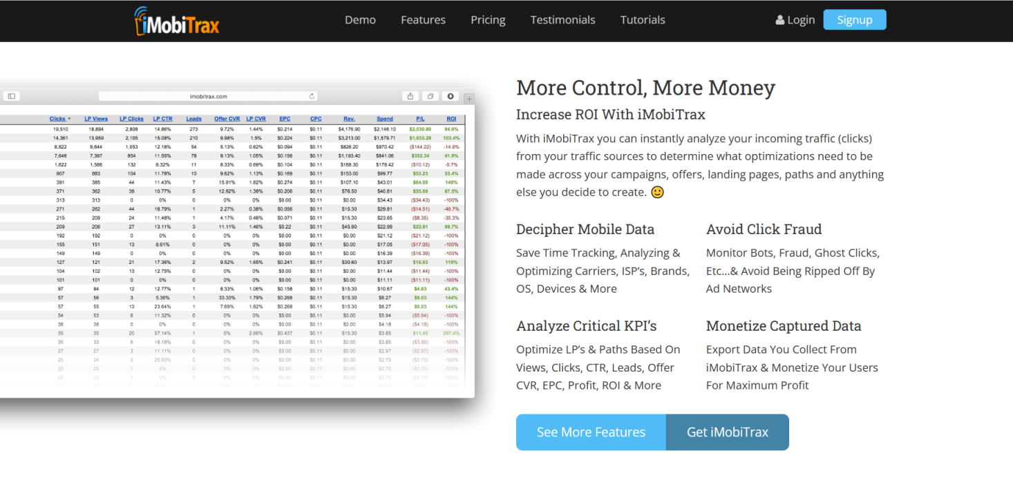iMobiTrax是一个流量追踪统计程序,它可以同时追踪mobile和desktop广告,帮助用户跟踪每一个clicks,并根据转化情况来科学地优化广告。该程序提供实时数据跟踪功能,包括点击率、转化率、收益等多个指标,并配备实时的数据可视化工具,使用户能够直观地了解广告投放效果。