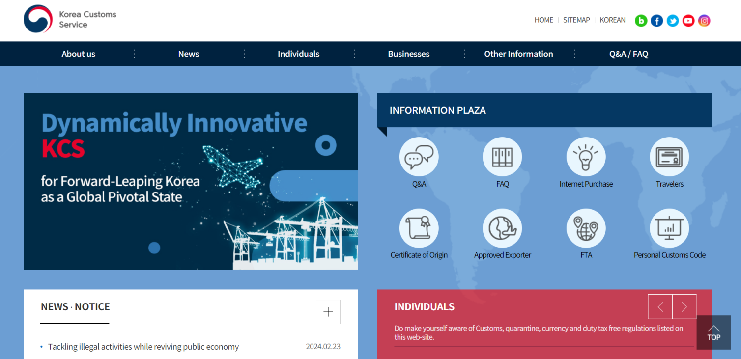 英文网站:提供英文版的韩国海关网站,方便外国用户访问和使用。