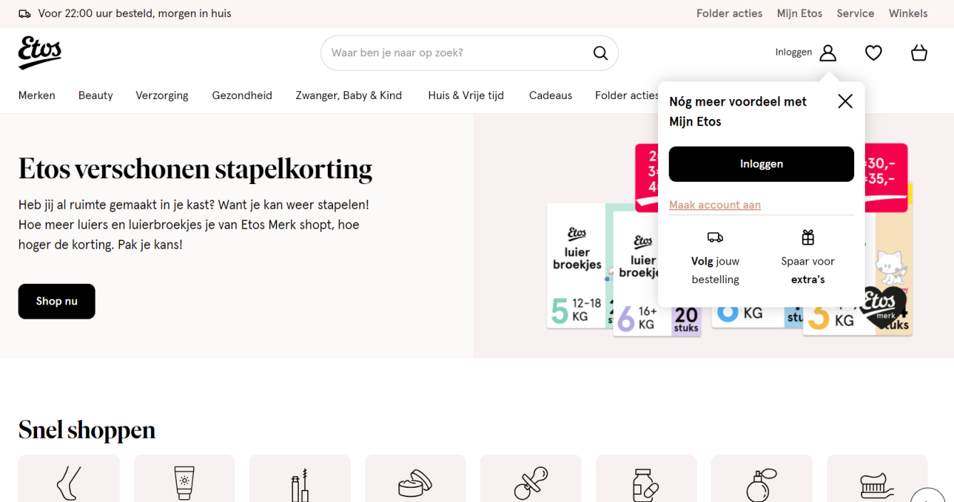 Etos是荷兰一家知名的药妆连锁店,成立于1919年。Etos通过其广泛的门店网络,在荷兰各地提供优质的医药、化妆和个人护理产品。