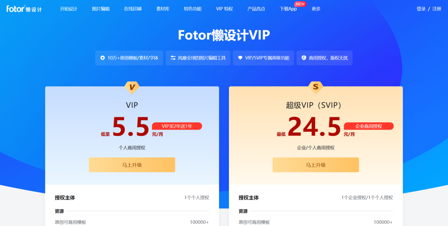 Fotor懒设计提供了免费版和VIP版。