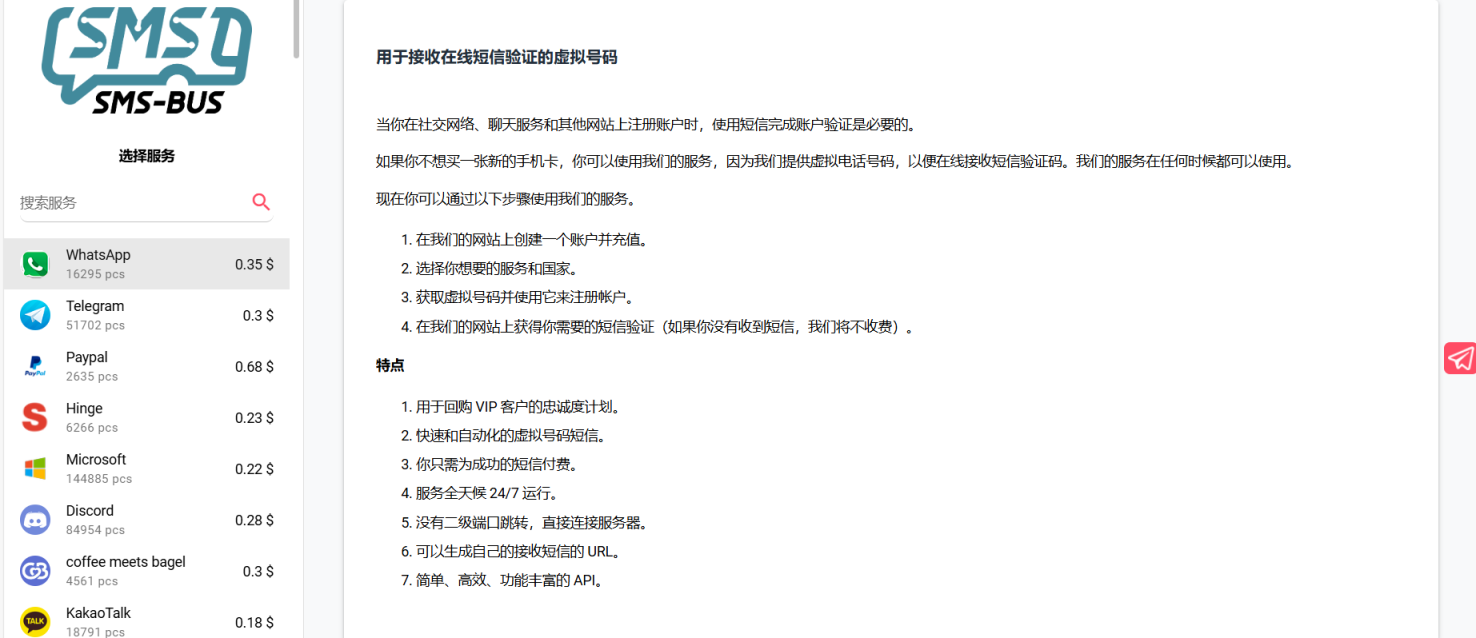 SMS-BUS根据国家和服务制定了不同的定价标准。