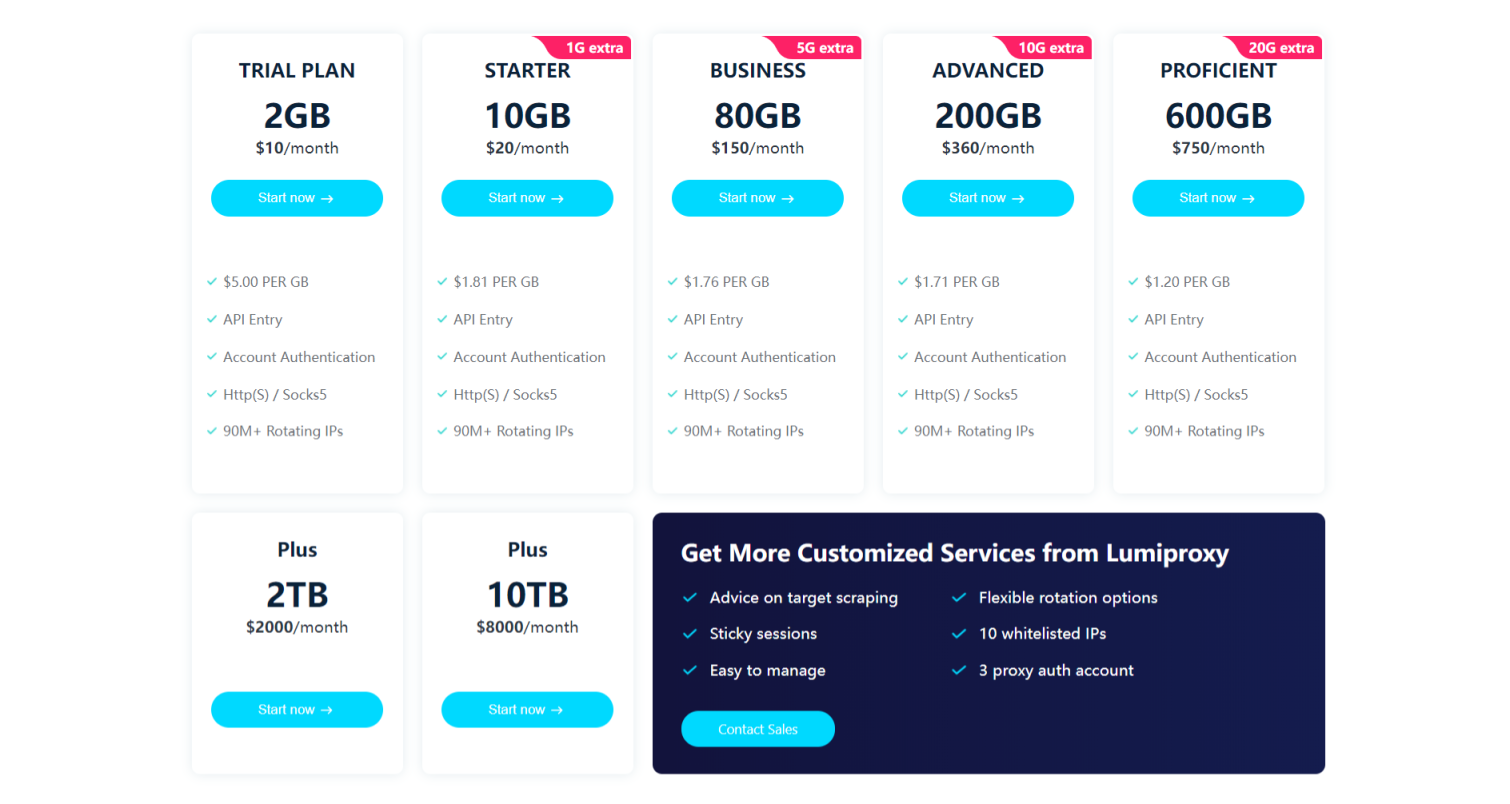 更详细的定价计划信息,可以查看 Lumiproxy 官网信息