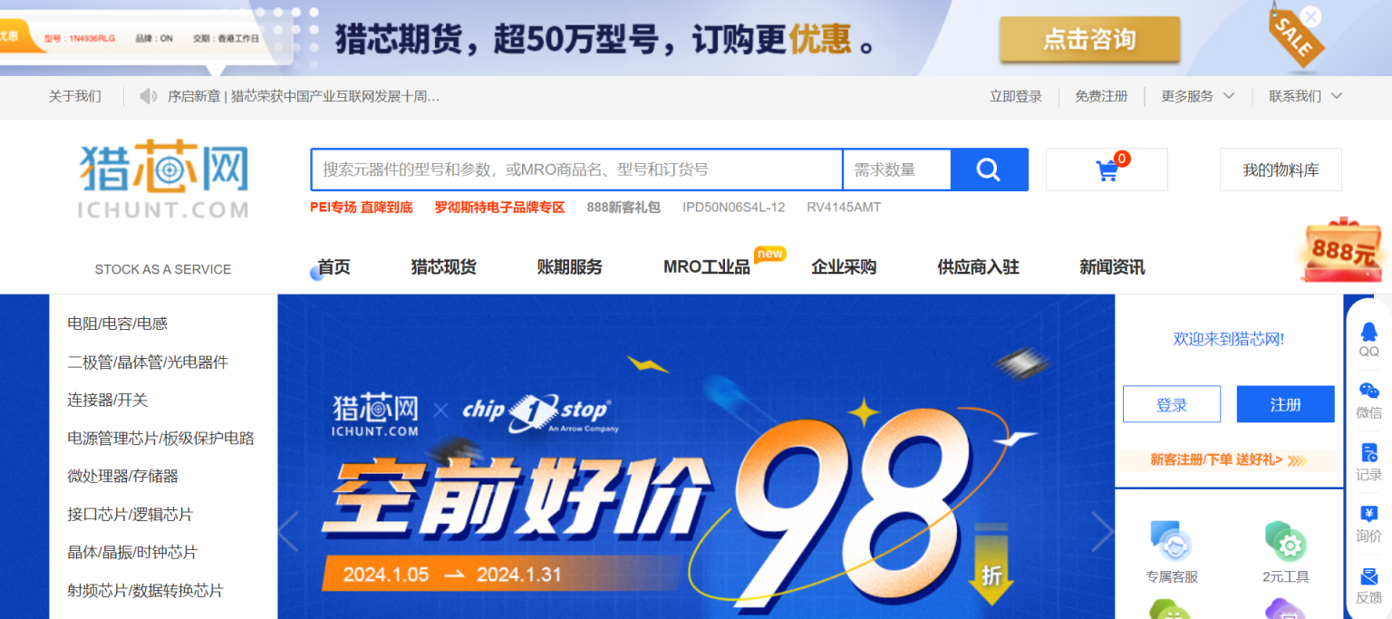 开放平台服务:作为电子元器件领域的开放平台,猎芯网连接全球 5000 多家供应商,提供多达 3000 万 SKU 的电子元器件现货。通过开放平台,企业可以快速找到所需元器件,实现高效的采购流程。
