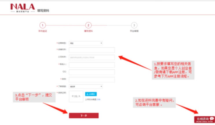 3.按要求填写相关入驻资料,等待平台审核。